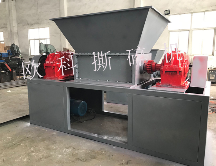 常見的是剪切式撕碎機,他有二到四根刀軸,主要靠“剪和切”的原理來完成撕碎的過程。這種撕碎機的原理是像剪刀一樣把物體撕碎。