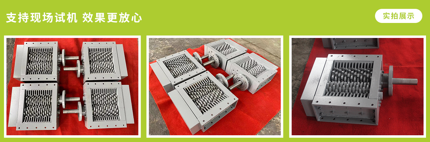 撕碎機刀箱用于破碎塑料、橡膠、纖維、紙張、木材、大型中空物料(塑料桶等大型容器)和各種混合廢料特別是含有金屬的廢料,或者是預碎含有泥沙等容易磨損刀具的廢料。比如:成卷薄膜、編織袋、電視機、冰箱売、木頭、轎車和中型汽車輪胎及中空桶類、追網、硬紙板、電路板等。刀具的厚度和刀爪數量可根據不同物料更換。破碎中空物料時可配備壓料裝置提高產量。另可添加旋轉篩網控制出料尺寸。